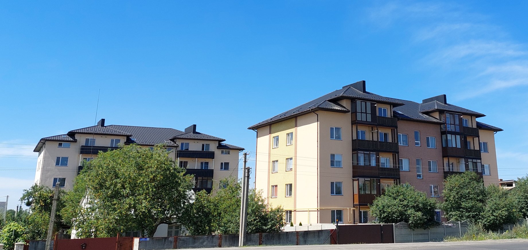 Покрівельний матеріал, комплектуючі, мансардні вікна — все це забезпечує герметичність, довговічність і сучасний дизайн багатоквартирного житлового будинку в Підгайцях.