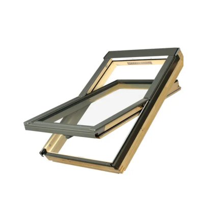 Для будинку також підібрали дерев’яні мансардні вікна від компанії «Fakro» українського виробництва. Однокамерна модель має завіси посередині висоти вікна, ручка в нижній частині рами та два положення для мікропровітрювання.